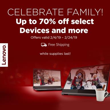 Celebrate Family with biggest savings of 2019. Receive up to 70% off during our Family Day Sale now through Feb. 24th. Lenovo winner of more than 70 awards at CES 2019.