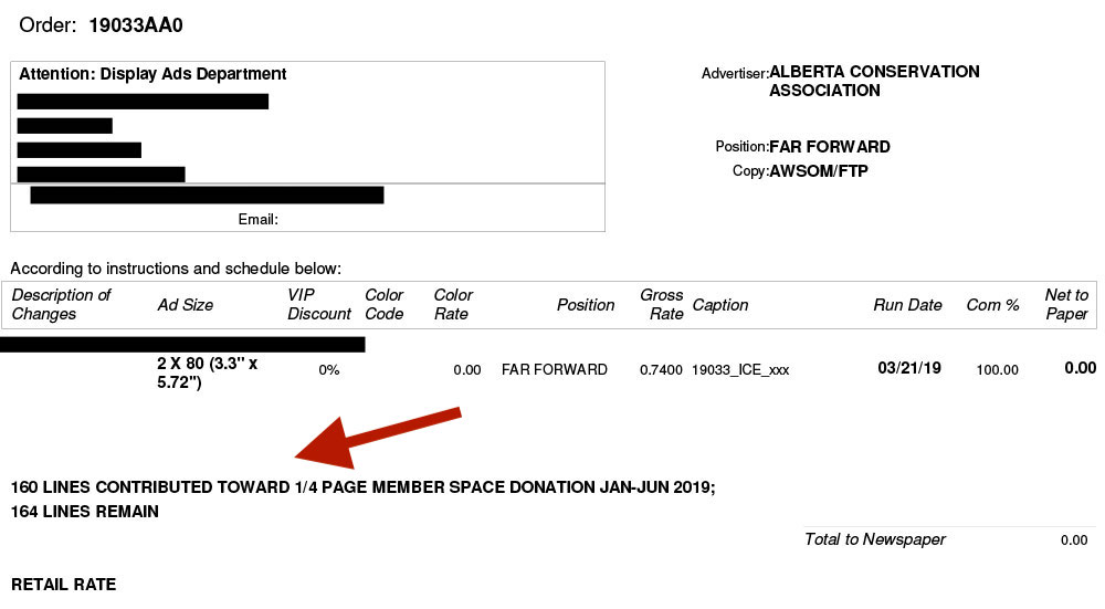 If, on a given order, the full lineage will be contributed to the space donation, the commission will be reflected as 100%; if there is only partial lineage on the order being contributed, OR there is colour on the order, the paper will be paid for the remaining lines or colour charge.
